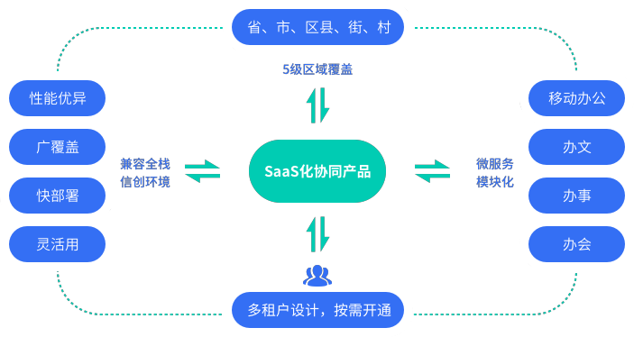 明動協(xié)同辦公平臺產(chǎn)品以多租戶“按需開通系統(tǒng)”的方式,采用微服務(wù)、模塊化的架構(gòu),滿足黨政機關(guān)的日常“辦文、辦事、辦會、移動辦公”協(xié)同辦公的需求,以“標(biāo)準(zhǔn)+定制”一體化系統(tǒng)實現(xiàn)省、市、區(qū)縣、街、村等5級區(qū)域覆蓋。