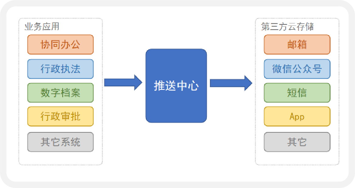 推送中心為所有業(yè)務系統(tǒng)提供了標準的消息推送功能。系統(tǒng)集成了插件化管理功能,提供了簡單易用的可視化管理界面。開發(fā)者通過推送中心,可以快速對接到各類消息推送平臺,如郵件推送、百度云推送、短信推送等。業(yè)務系統(tǒng)通過推送中心,可以快速獲得各類平臺的推送能力,保證項目的交付速度。